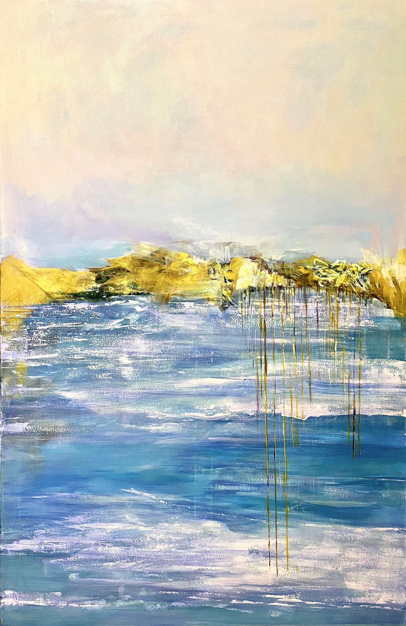 Transform your space with Rising light, a stunning abstract art piece with blue and golden accents. Delight in the calming yet captivating aesthetic that will elevate any room. Enjoy the luxury of on-demand art and bring an effortlessly stylish touch to your decor.